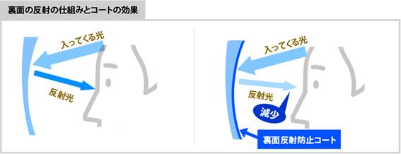 通常、紫外線の多くはレンズの前面に当たりますが、上や横、後ろから浴びる紫外線の一部は顔とレンズの隙間から入り込み、レンズの裏面に反射して目や目の周辺の皮膚に当たってしまう可能性があります。顔の形にフィットした形状で、隙間から光線が入りにくいフレームデザインや、裏面にUV反射防止コートが施されたレンズであれは、正面以外から入り込む紫外線を防ぐことが可能です。