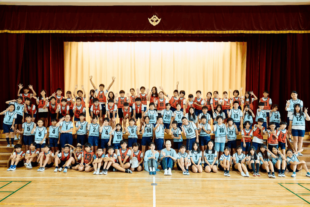 授業の最後には集合写真を撮影し、江村美咲選手、児童共に笑顔に溢れた特別授業となりました。今回の授業を通じて、児童たちは「スポーツを通じて努力を重ねること」「目の健康の大切さ」を学びました。トップアスリートとの直接交流は、将来の夢や自己実現に向けた大きな刺激となりました。