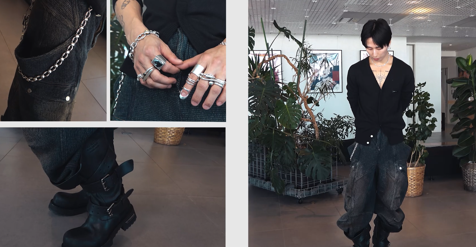 「全身ご自身のブランドですね、素敵です!私は今日大成さんとの対談ということで、結構普段はゴールドアクセの方が多いんですが、大成さんは常にシルバーをつけていらっしゃるので私も今日はシルバーにしてみました。あと実は今日つけているネックレスが大成さんのブランド「h’eres(ヒアーズ)」です。」