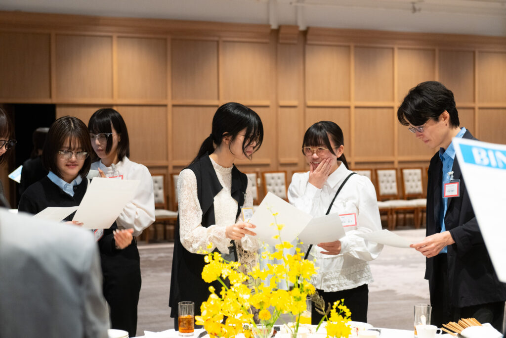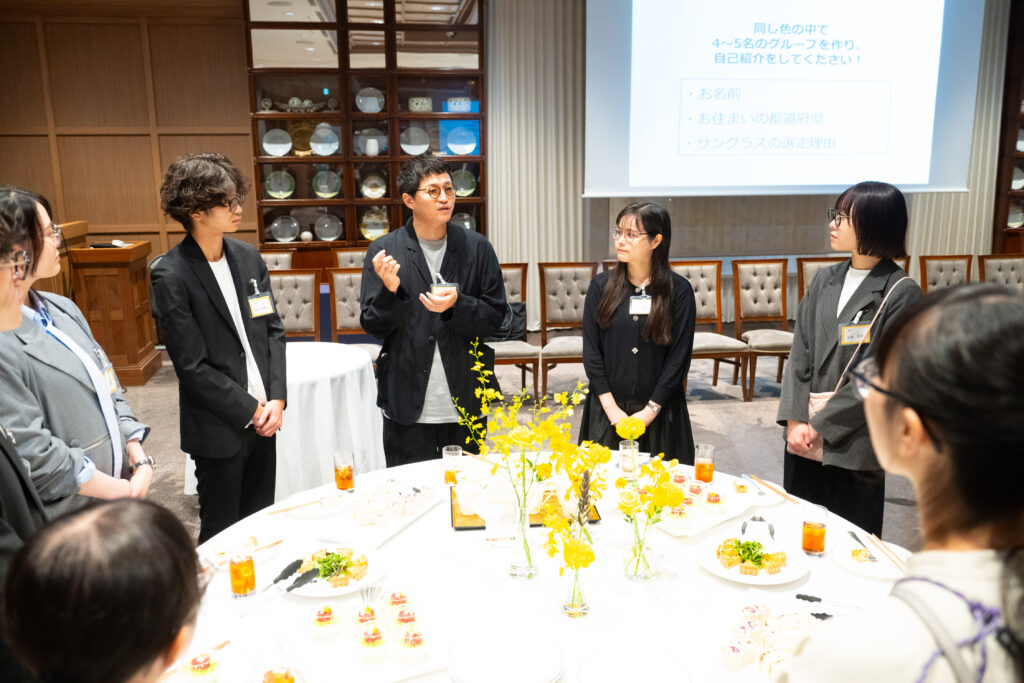 式典後の懇親会では、内定者がそれぞれお気に入りのサングラスをかけ、先輩社員や同期と交流。サングラスを通じて笑顔が広がり、Zoffらしい自由で前向きな空気に包まれた一日となりました。