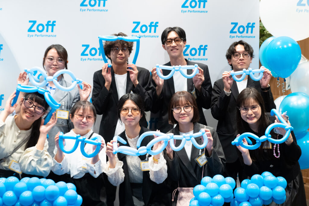 「Zoff」は創業当初から、「もっと自由に・楽しく・気軽にメガネをTシャツのように毎日着替える社会をつくること」を理念に掲げています。メガネを視力矯正のための器具にとどまらず、人の気持ちや生活を豊かにするファッションアイテムとして位置づけ、常に新しいカルチャーを発信してきました。今回の内定式では、未来の仲間となる内定者に「サングラスを通して、その場にいる全員と楽しい時間を共有してほしい」という想いを込め、パーティー形式で実施。7万2千通りのバリエーションの中から、内定者自身が選んだお気に入りの1本を記念品として贈呈しました。