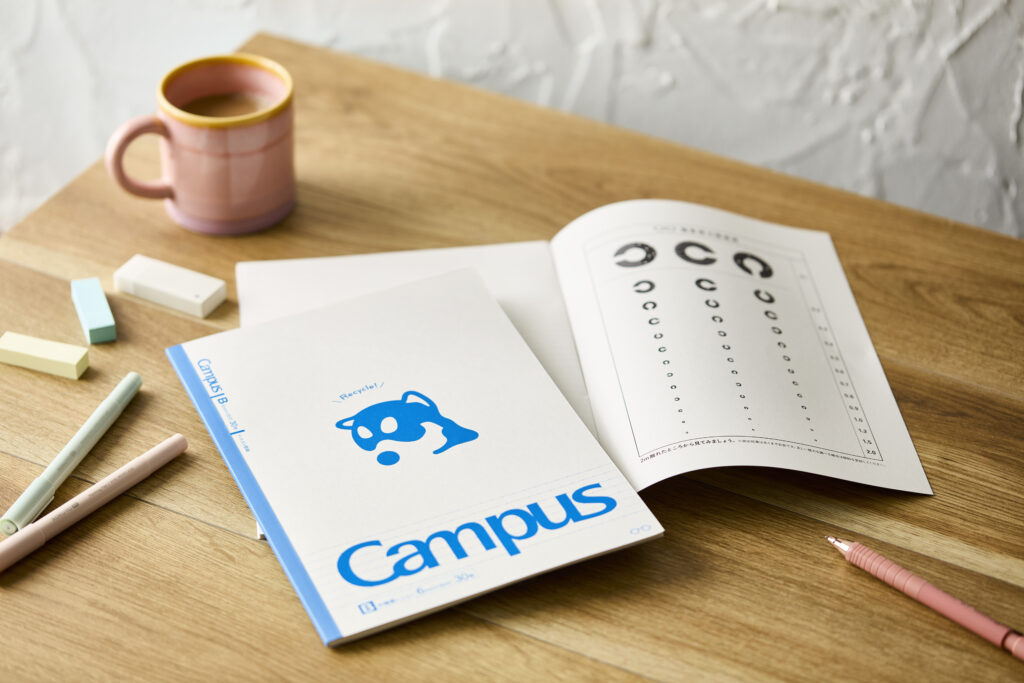 レンズの梱包に使用された包装紙をアップサイクルし、コクヨ株式会社の<Campus>ブランドと共同開発した特別仕様「Zoff x Campus」オリジナル キャンパスノートは、2026年2月2日(月)より全国のZoff店舗にて、商品を購入した学生を対象に限定ノベルティとして配布します。