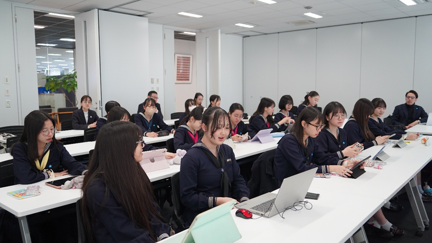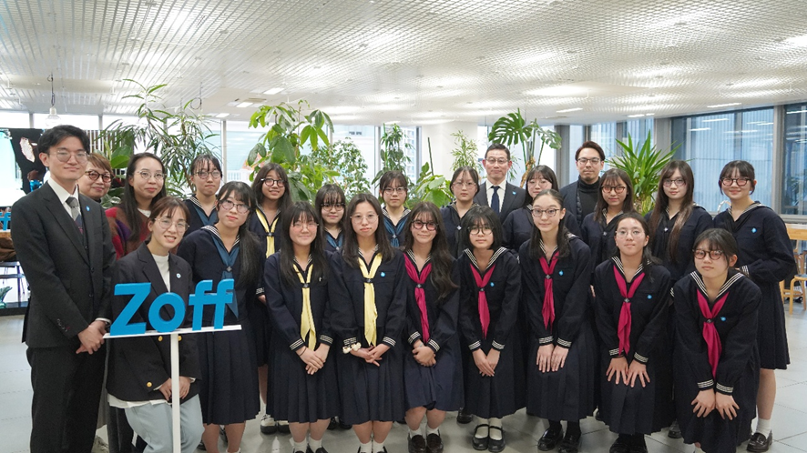 Zoffは、紫外線から目を守るためにサングラスの制服導入を進めている女子聖学院中学校高等学校の生徒を招き、今後サングラスを学内、および学外に啓発していくための学びの機会として2025年12月17日(水)に企業訪問の受け入れを実施しました。