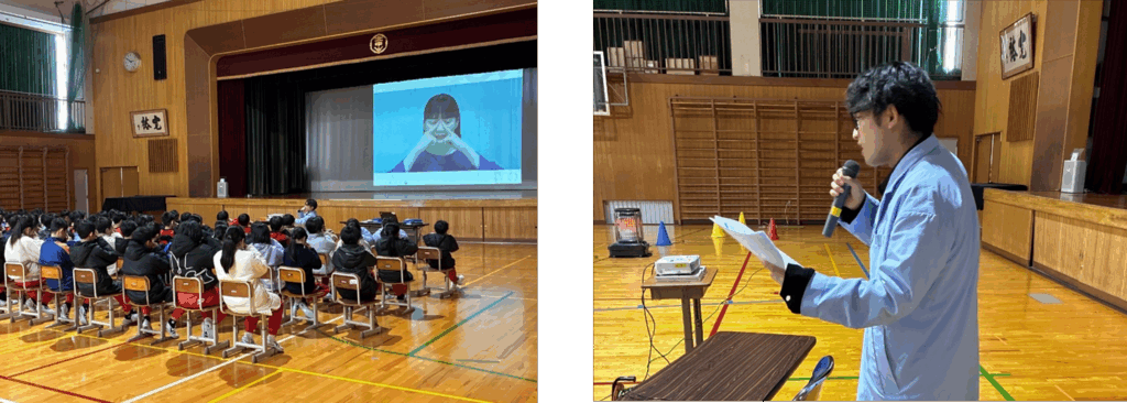 授業を実施する前に、児童の皆さんが目の健康に関する劇を披露してくださりました。劇を通して和やかな雰囲気になったところで、授業を行いました。
